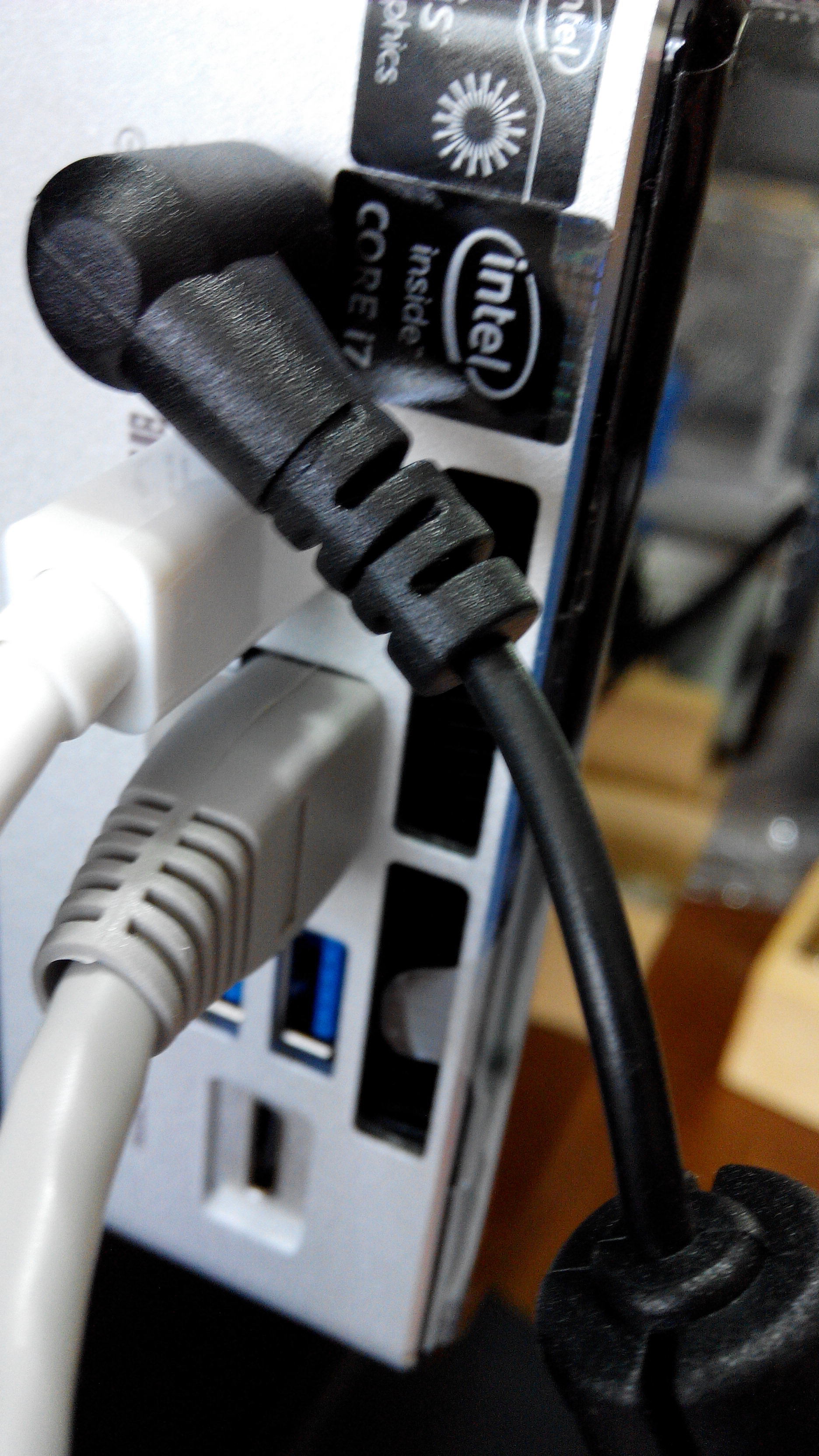 下圖是後面照,耳機/麥克風複合插孔,2 個 USB 3.0 連接埠。附上之前買來沒用的無線滑鼠和鍵盤組,真是絕配。不過實在很討厭用無線滑鼠,還要換電池,又有電磁波。再加上linux架站根本不用滑鼠,最後還是換回有線鍵盤。