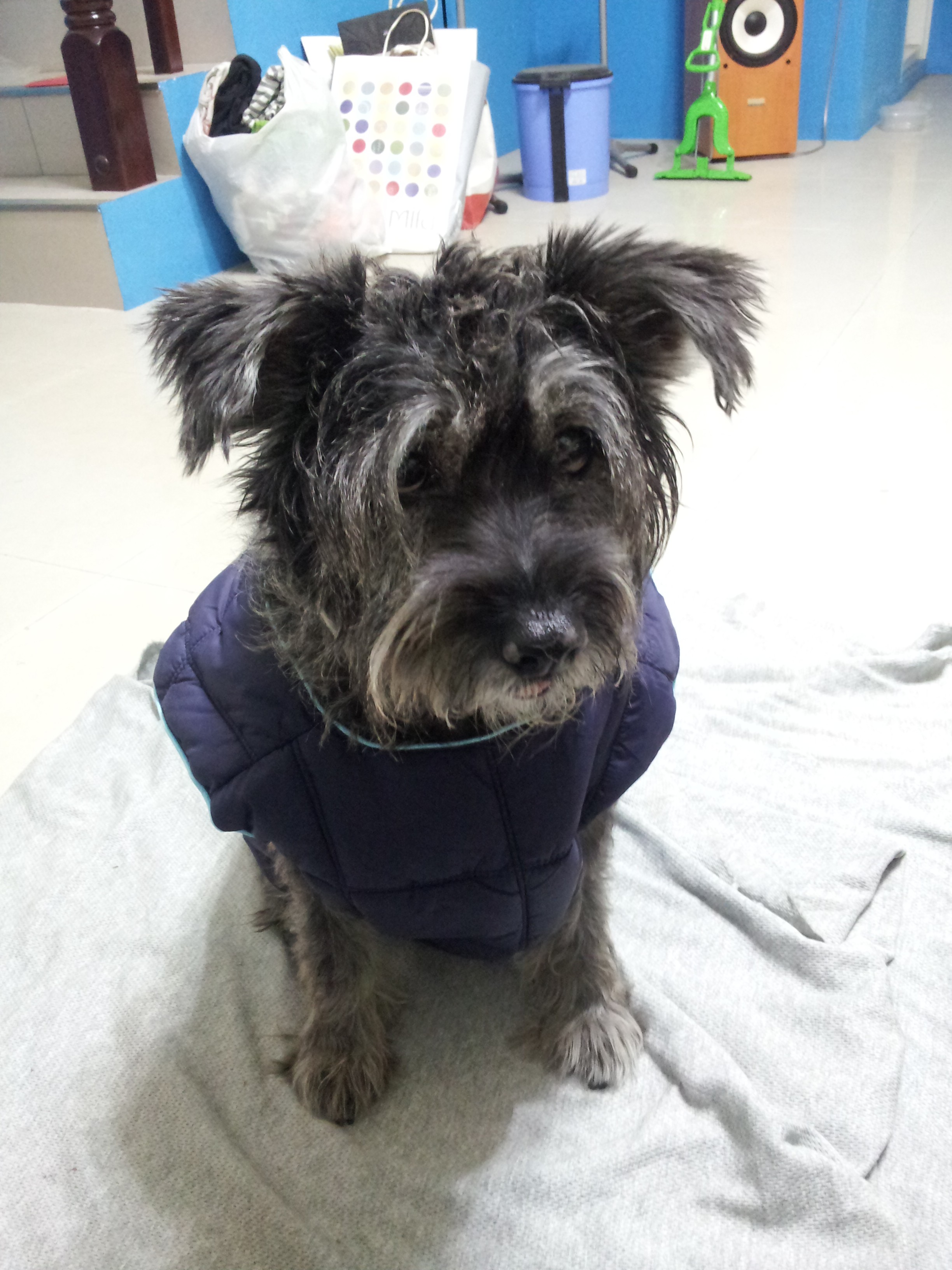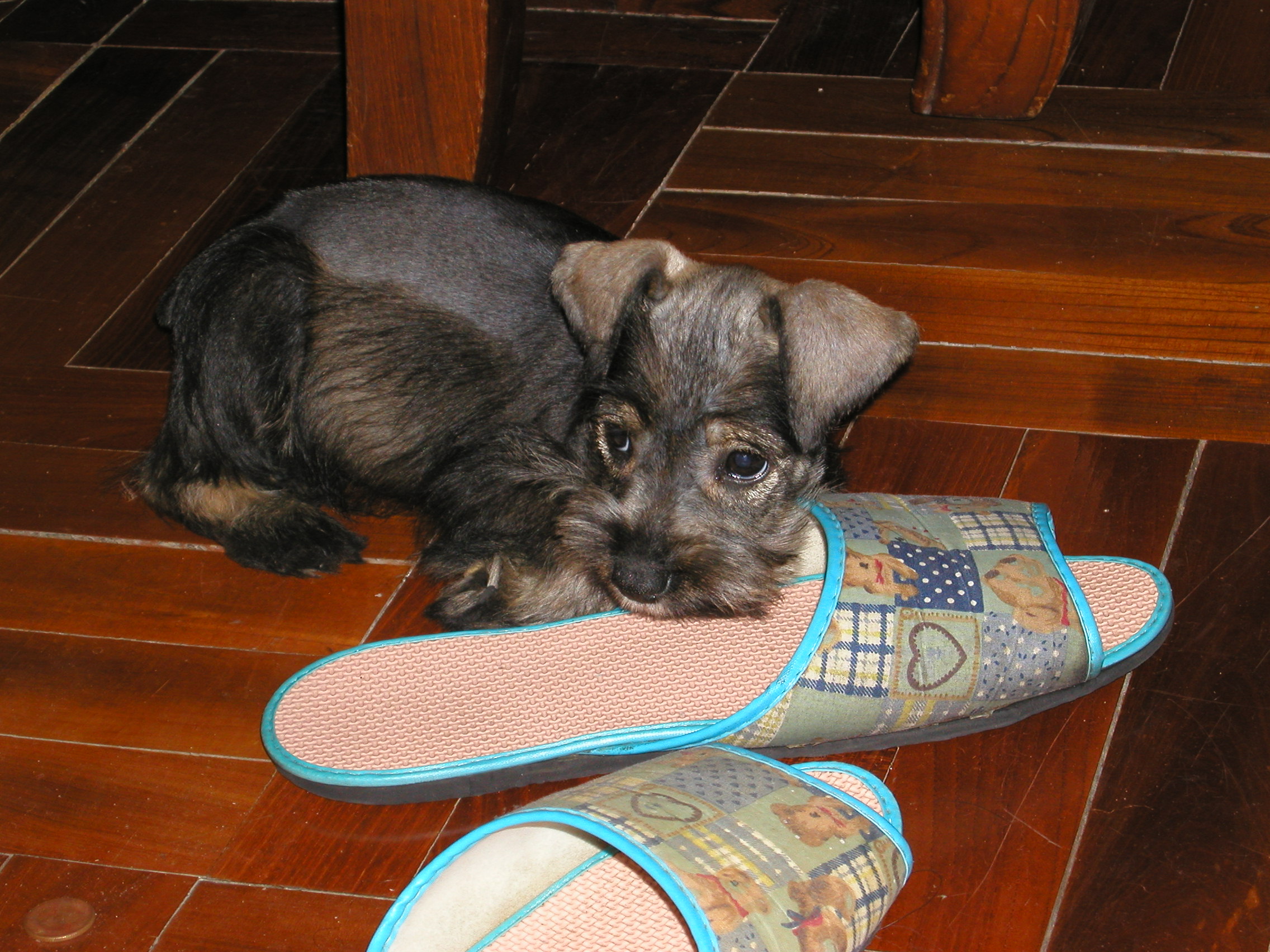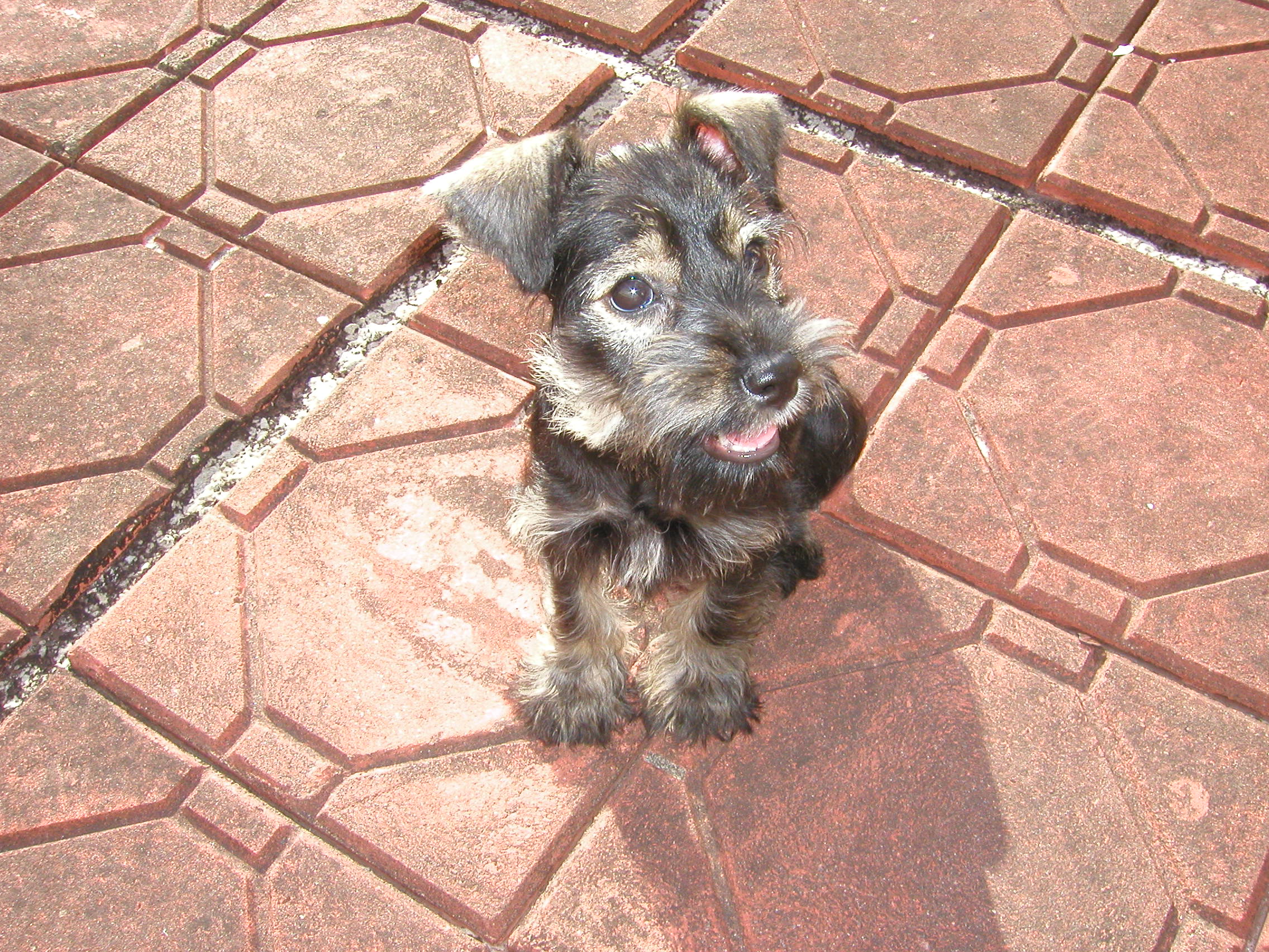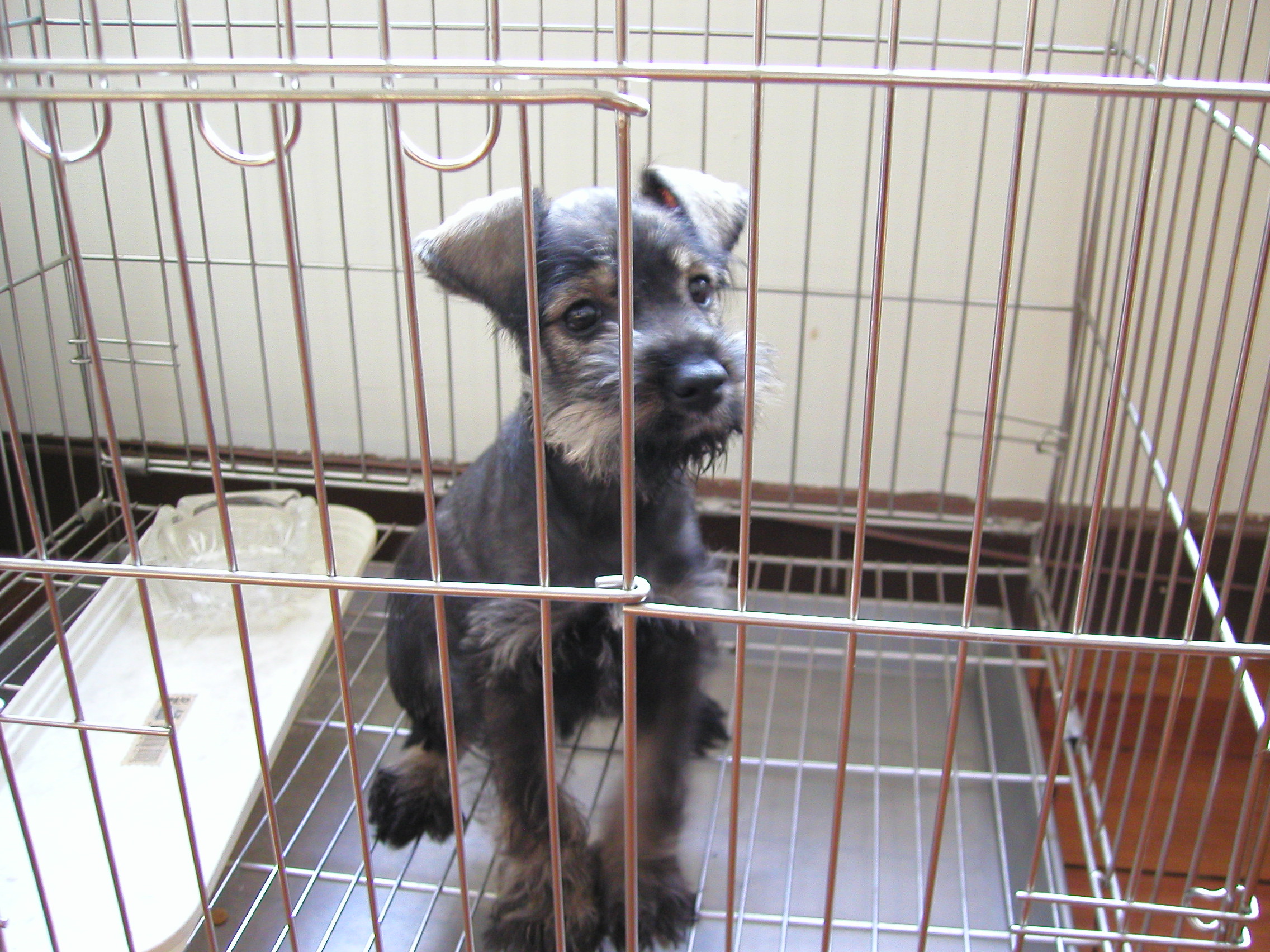 又折回去問老闆這是純種迷你雪納瑞嗎?答『當然,還有血統證明。』跟老闆稍微議個價,老闆幾乎不考慮就答應了。我就這樣帶著有點高興又有點不確定的心情和她回家了。